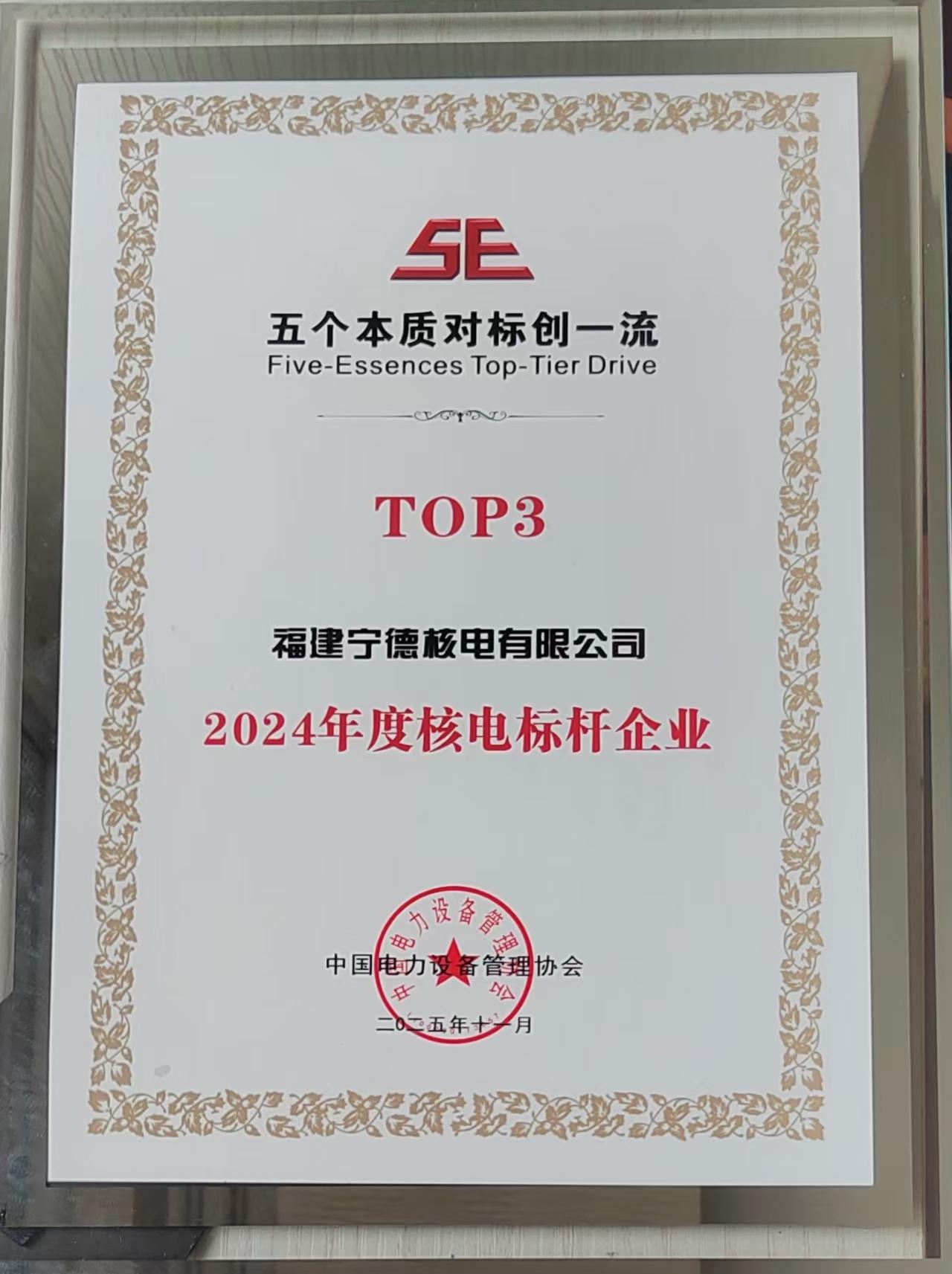 11月15日,中國電力設(shè)備管理協(xié)會在深圳召開全國電力“五個本質(zhì)對標(biāo)創(chuàng)一流”表彰會議,寧德公司獲評2024年度全國電力“雙滿意五個本質(zhì)”對標(biāo)標(biāo)桿企業(yè),寧德公司得分位列全國所有核電企業(yè)第二名,這也是寧德公司繼2023年之后再次獲評此殊榮。