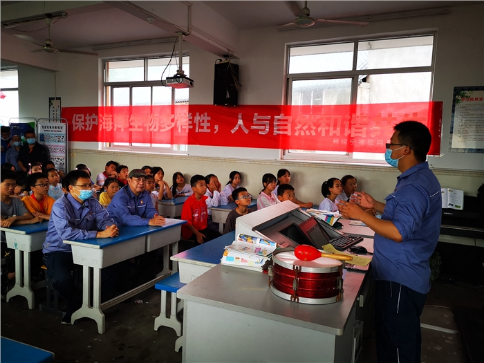 為加強(qiáng)核電科普知識(shí)宣傳,增強(qiáng)周邊公眾保護(hù)生態(tài)環(huán)境、呵護(hù)蔚藍(lán)海洋意識(shí),值此世界環(huán)境日和世界海洋日來臨之際,6月1日下午,公司生產(chǎn)服務(wù)黨支部、化學(xué)環(huán)保黨支部、黨群工作黨支部、綜合管理黨支部、運(yùn)行二部第一/四/五黨支部聯(lián)合走進(jìn)柏洋小學(xué),開展以"保護(hù)海洋生物多樣性,人與自然和諧共生"為主題的一系列科普進(jìn)校園宣傳活動(dòng),讓同學(xué)們?cè)趯儆谧约旱墓?jié)日中,學(xué)習(xí)科普知識(shí),樹立環(huán)保理念。