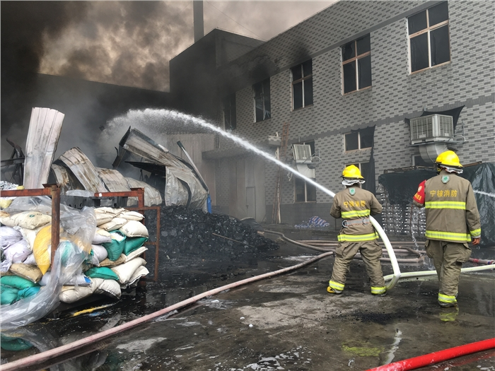 根據滅火方案,由寧德核電專職消防隊5名隊員尋找水源,在距火場600米處的內河使用抽水泵串聯供水確保前方水源不間斷,兩名隊員對廠房進行冷卻防止火勢蔓延到周邊公司。23點10分火災現場基本得到了控制,但廠房內陰燃與復燃小火較多仍需持續供水滅火。