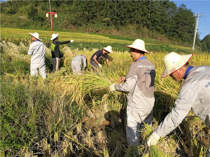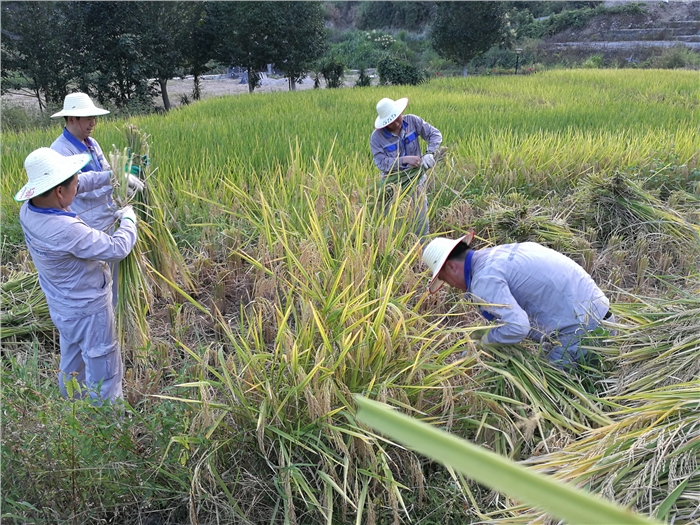 9月28日下午,廖厝村的一處稻田里,來了十幾名核電郎,他們正揮汗如雨,替村里的老黨員黃傳我收割五畝多成熟了的水稻。就在秋收開始前,黃傳我因為突發腦血栓,被送到福州住院治療。眼看著村里家家戶戶的水稻都快收割完了,黃傳我的五畝多水稻卻還顆粒未收,駐村書記徐軍輝向公司發出緊急求助。收到求助信息后,公司黨委第一時間在公司內部動員,要求在不影響正常工作的前提下,公司各支部黨員可組隊前往廖厝村參與秋收。